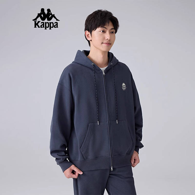 Kappa卡帕男装2025春季新款运动休闲复古针织连帽外套K0F12MK61