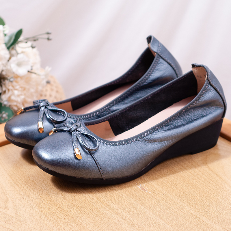 中年妈妈鞋子舒服软底真皮中跟防滑休闲皮鞋透气坡跟软皮单鞋百搭