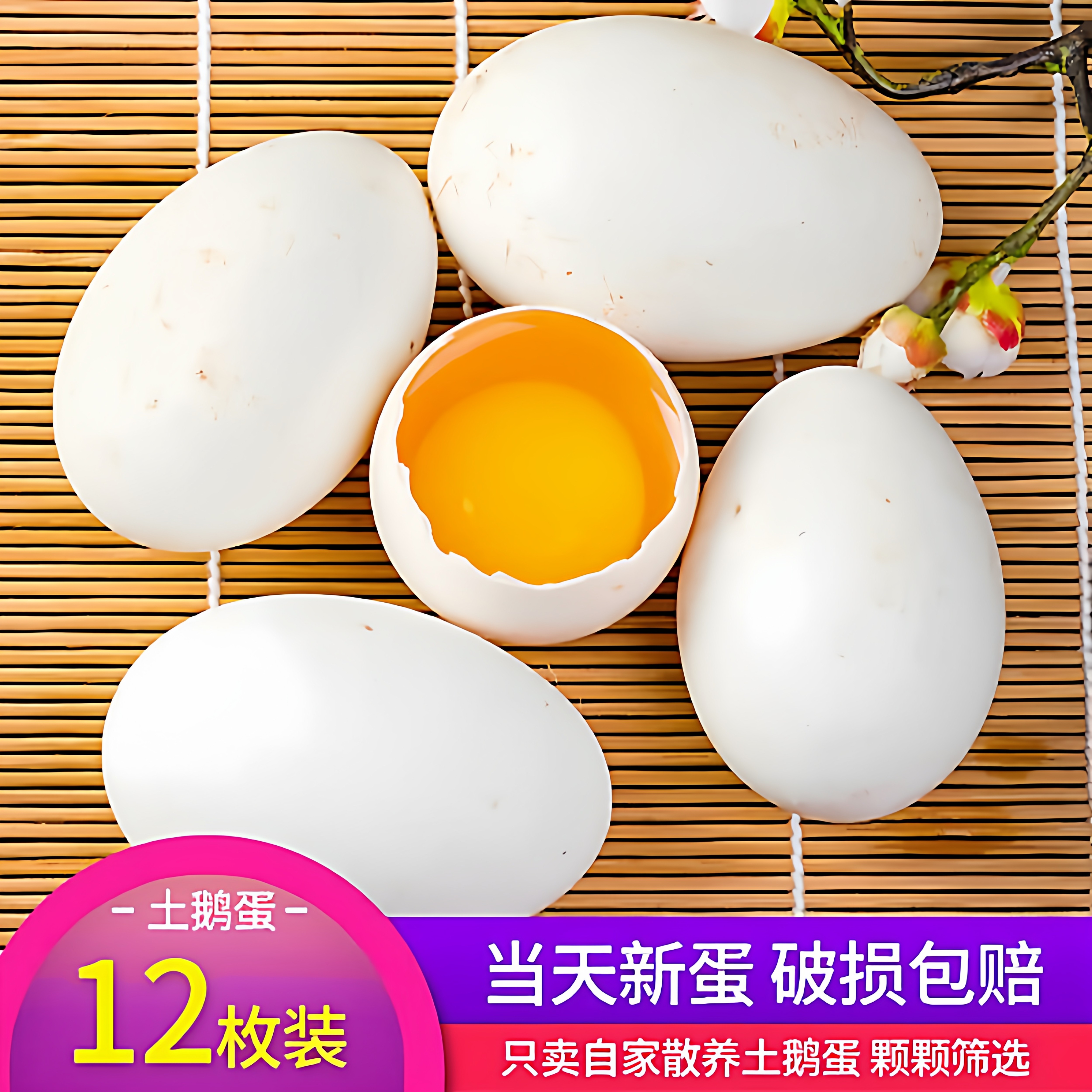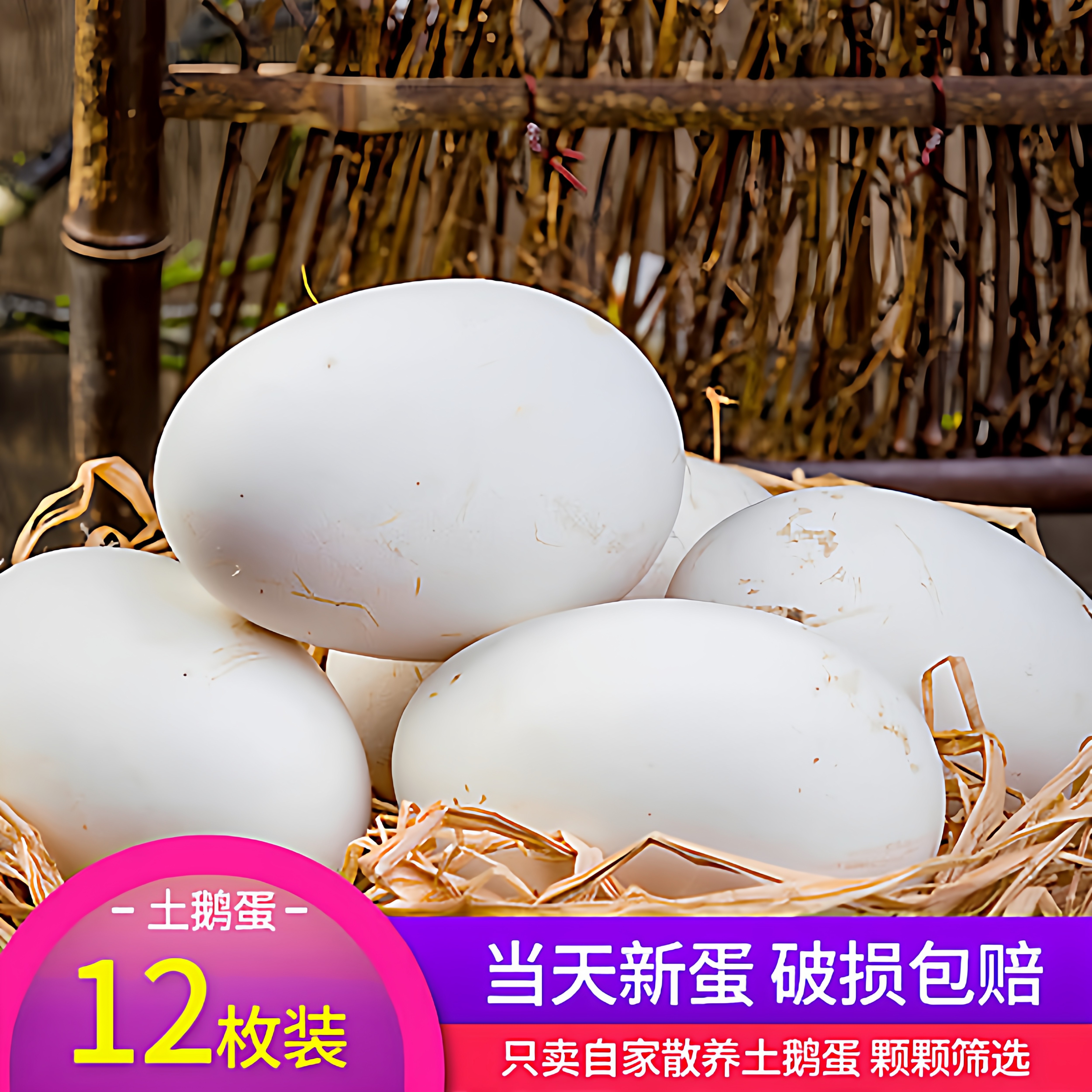 12枚140-160克正宗农家散养大双黄鹅蛋新鲜现捡现发当日土鹅鲜蛋