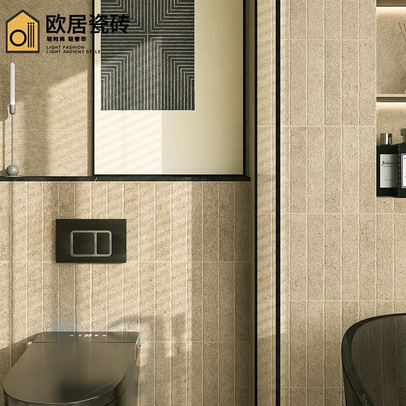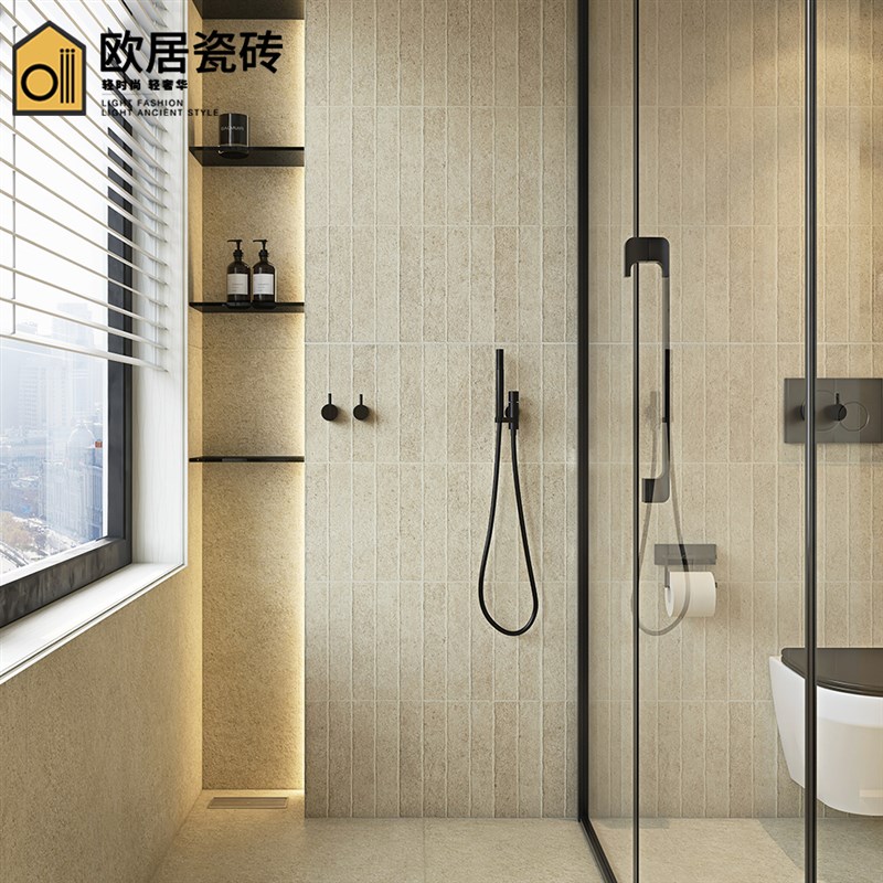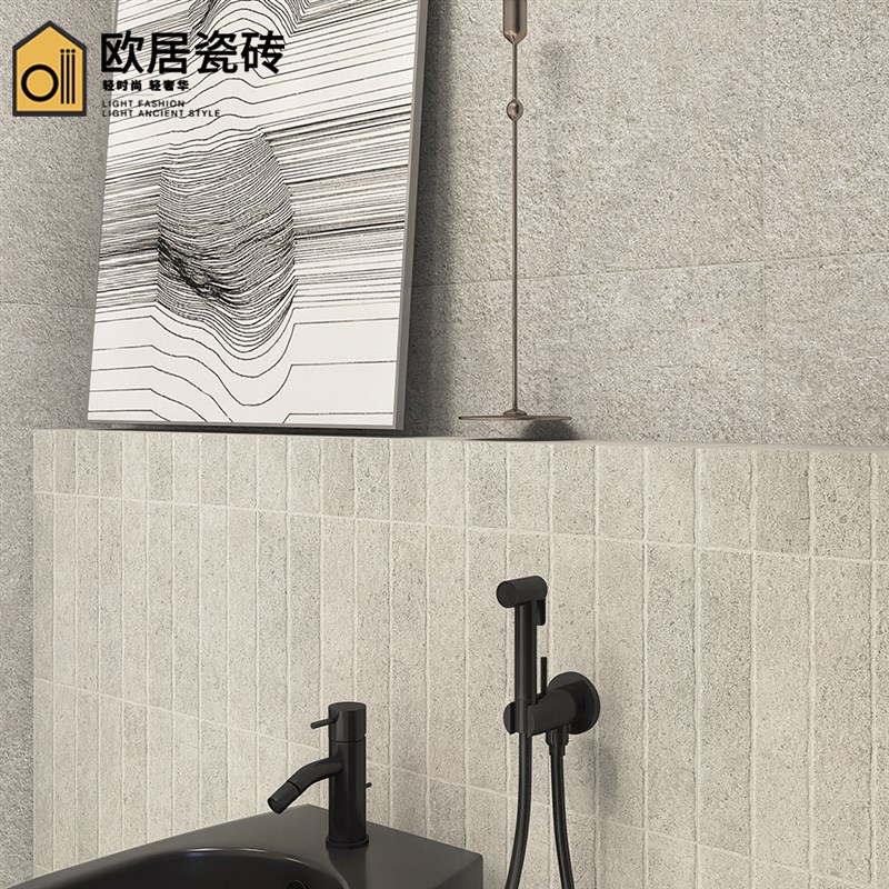 侘寂风酒店卫生间莱姆石瓷砖600x1200浴室厨房墙砖客餐厅防滑地砖