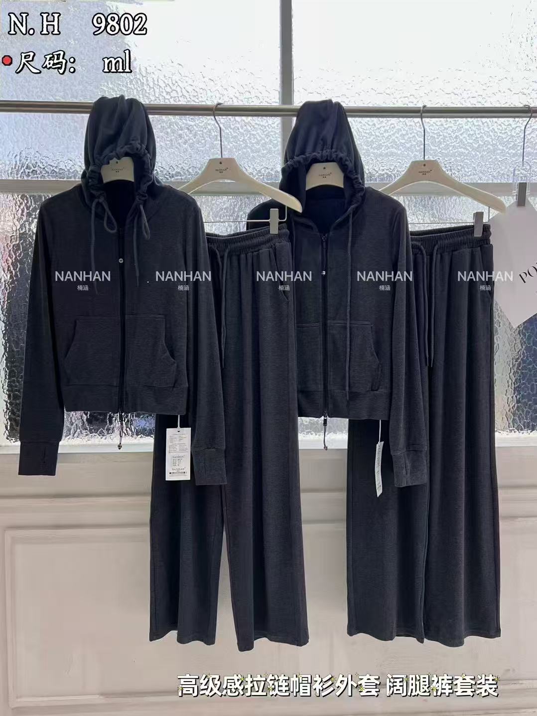 楠涵NANHAN2025秋季新款时尚休闲运动套装女连帽卫衣外套阔腿裤潮
