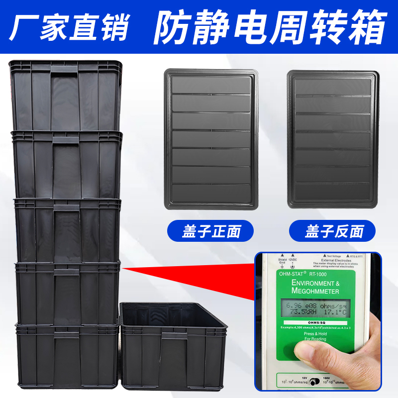 防静电周转箱黑色ESD工业电子元件零件物料收纳盒胶筐导电箱带盖