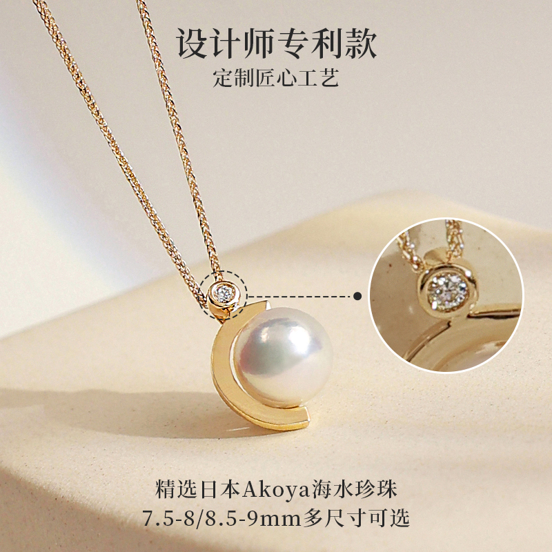 BEAUFINA百分娜半糖系列18k金Akoya海水珍珠项链锁骨链钻石吊坠