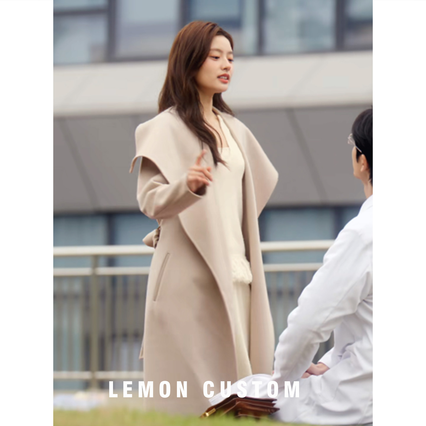 【徐若晗同款】双面呢大衣韩系高级感大翻领中长款羊毛呢外套女