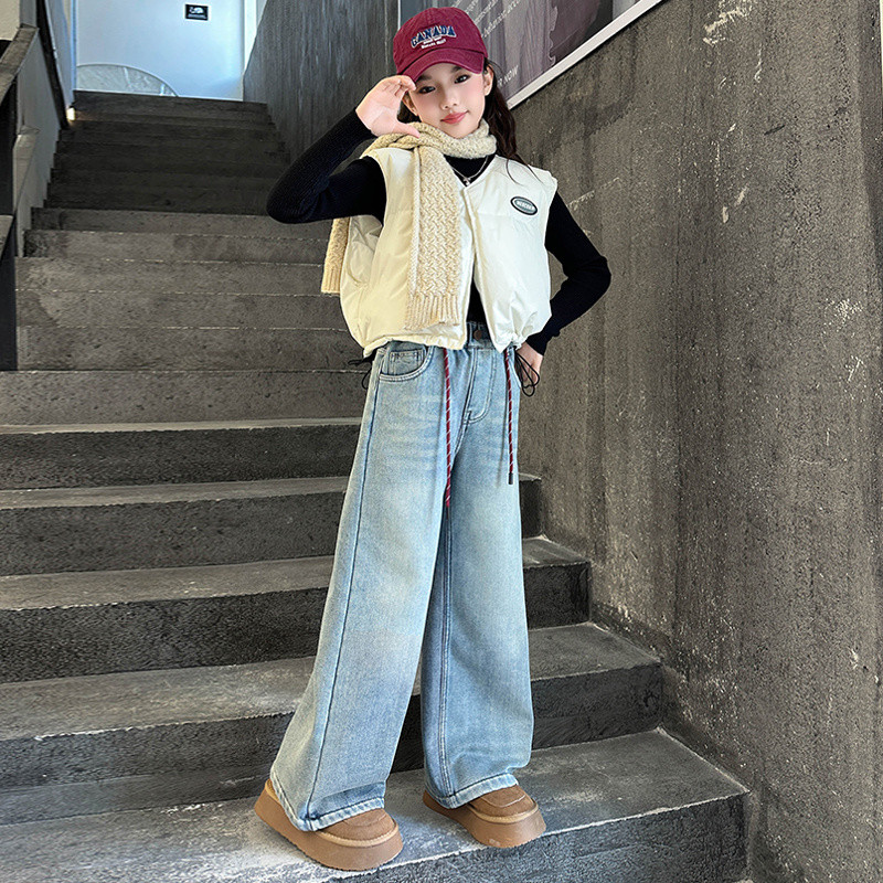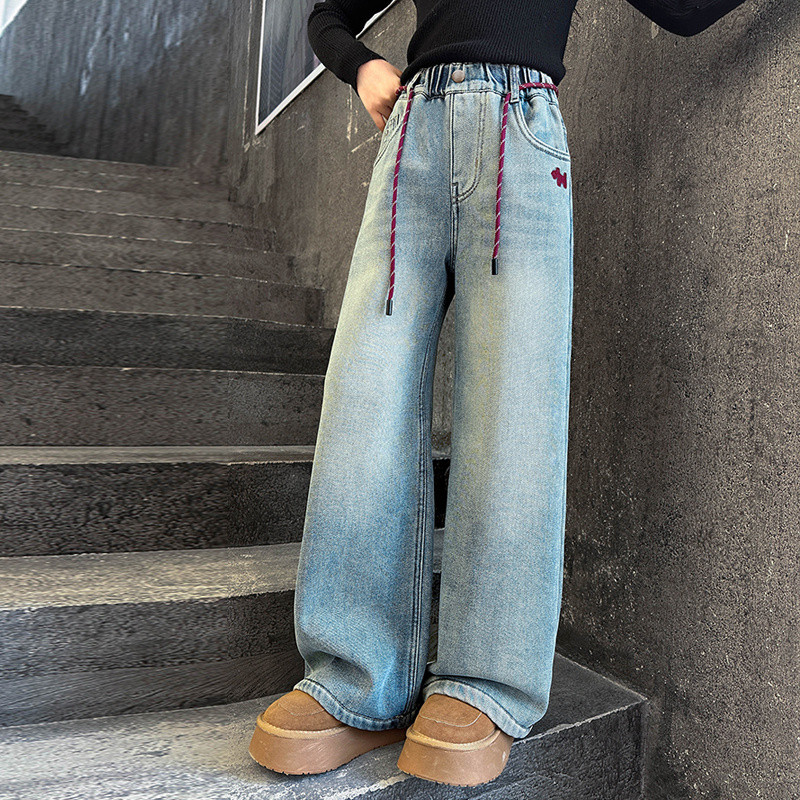 2025女童春季新款牛仔阔腿裤韩版宽松百搭洋气中大童儿童直筒长裤