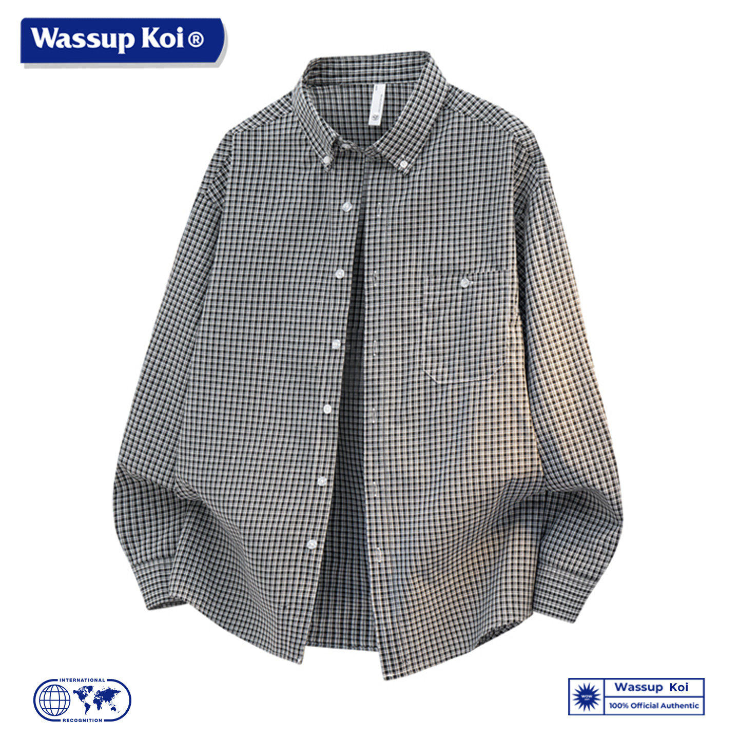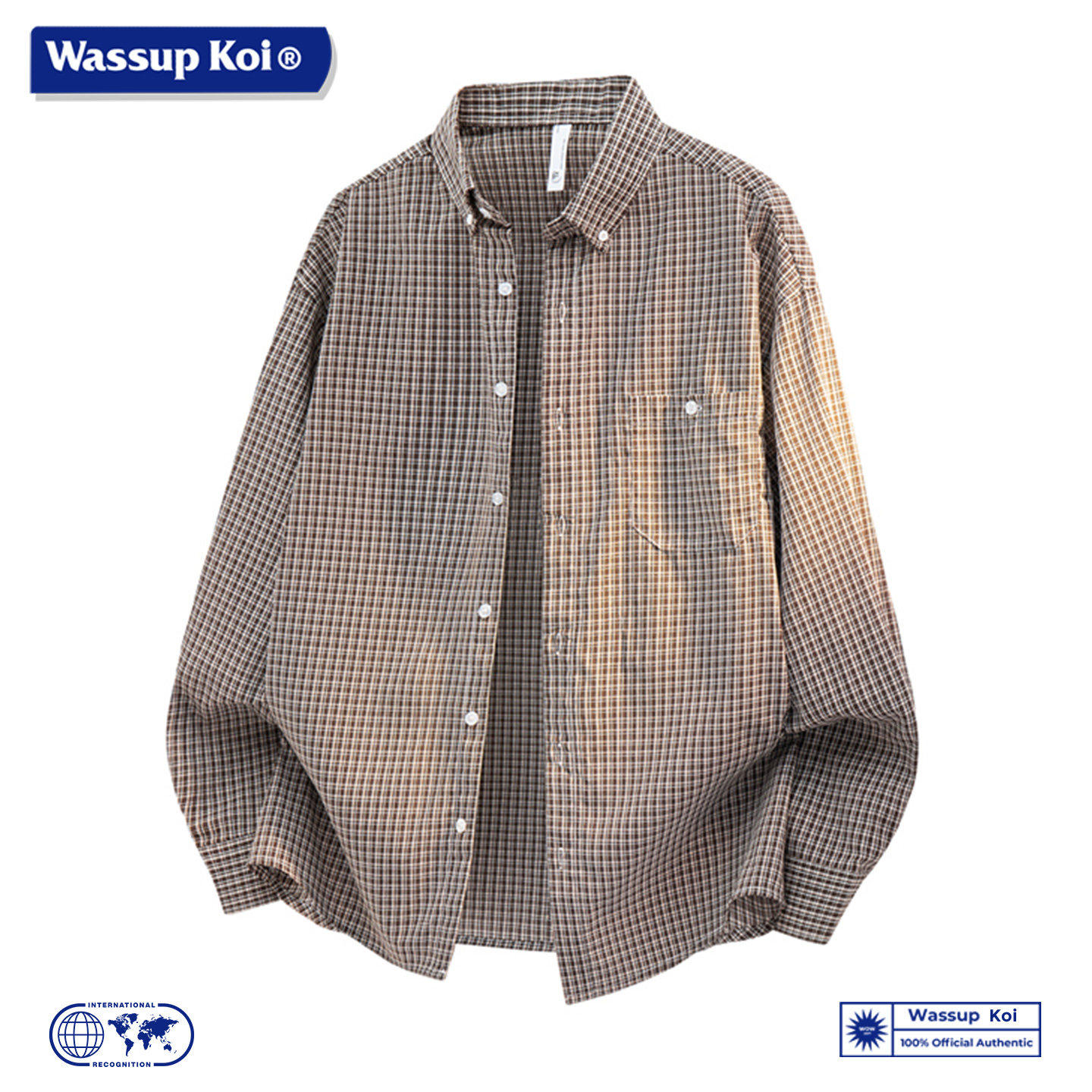 WASSUP KOI复古格纹长袖衬衫男春季2026新款宽松休闲翻领衬衣外套