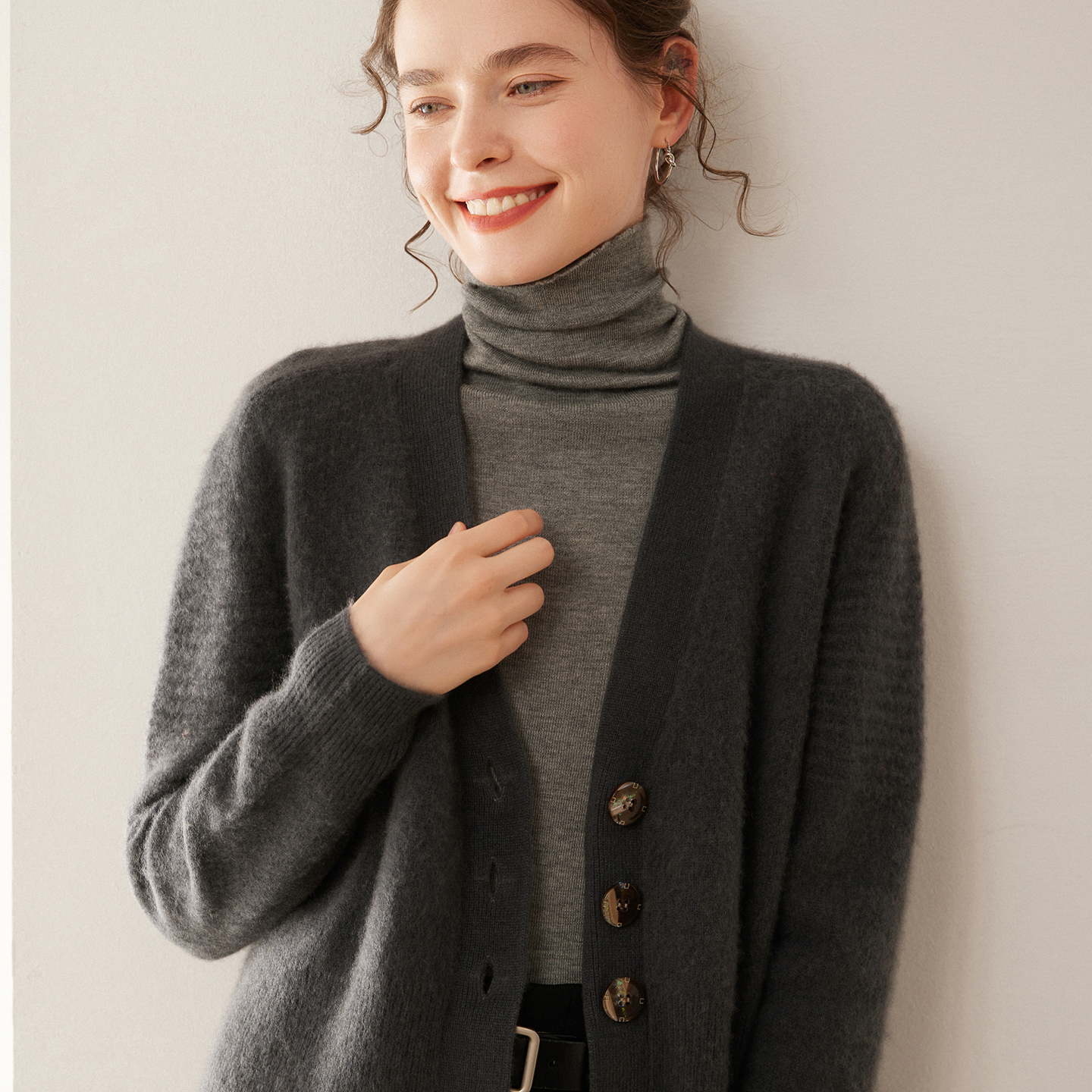 秋冬新款山羊绒开衫女V领加厚