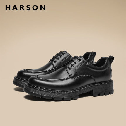 哈森男鞋秋季大头商务休闲皮鞋男士增高真皮爸爸休闲鞋子舒适软底