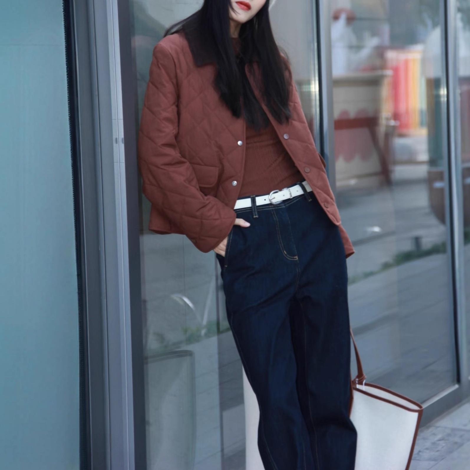 it :orange forest巴恩风菱形羽绒服短款显瘦气质萎格羽绒外套女