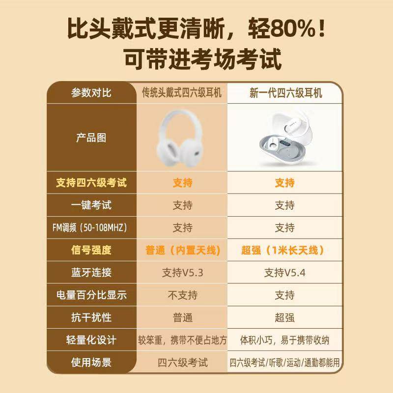 艾本BC51耳挂式英语四六级听力考试调频收音机蓝牙耳机二合一