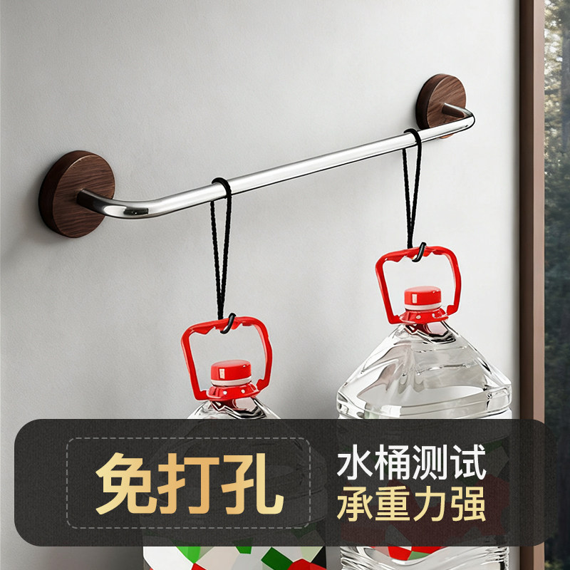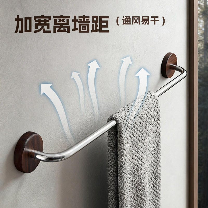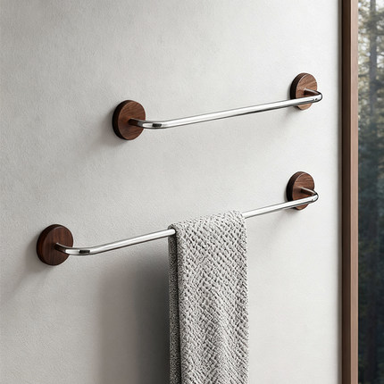 慕家胡桃木304不锈钢毛巾架单杆免打孔毛巾杆卫生间浴室置物挂杆