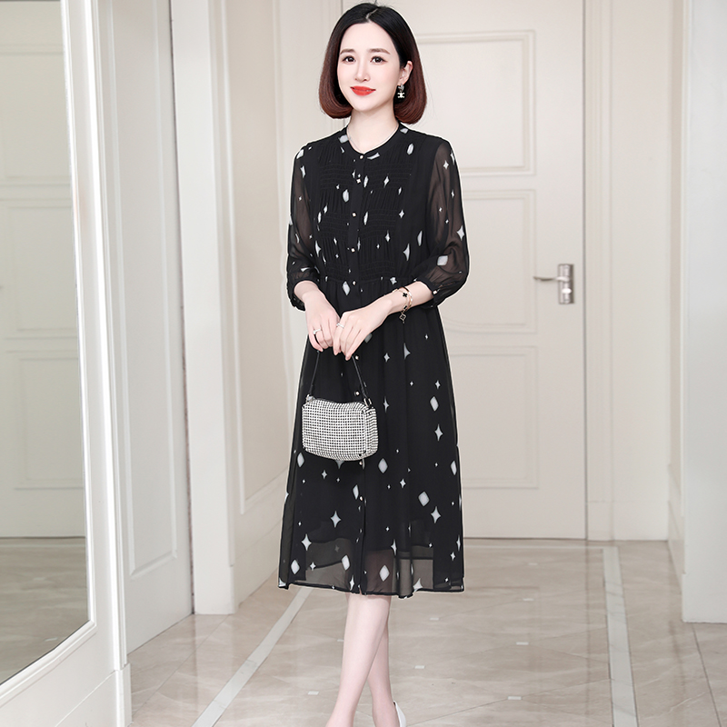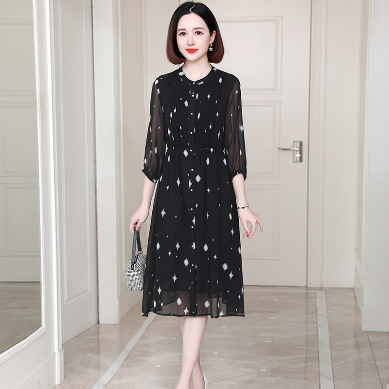 新款重磅高级真丝连衣裙女妈妈杭州正宗桑蚕丝小众夏季显瘦气质