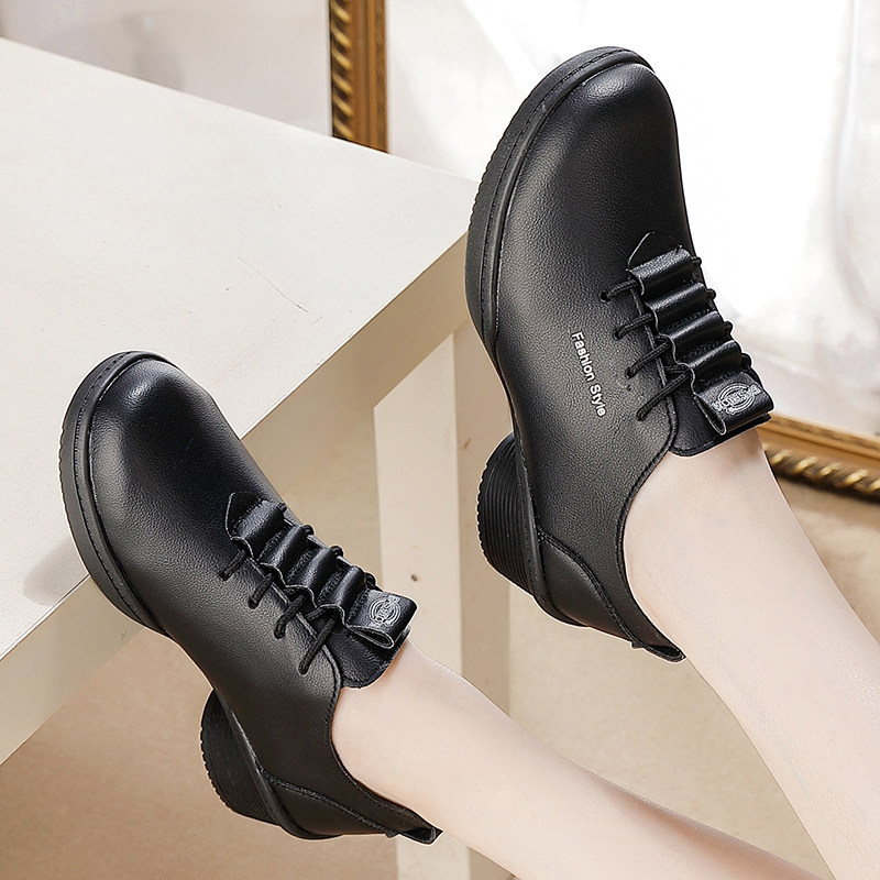 一脚蹬时尚懒人休闲女士单鞋2025秋新款百搭坡跟中老年妈妈跳舞鞋