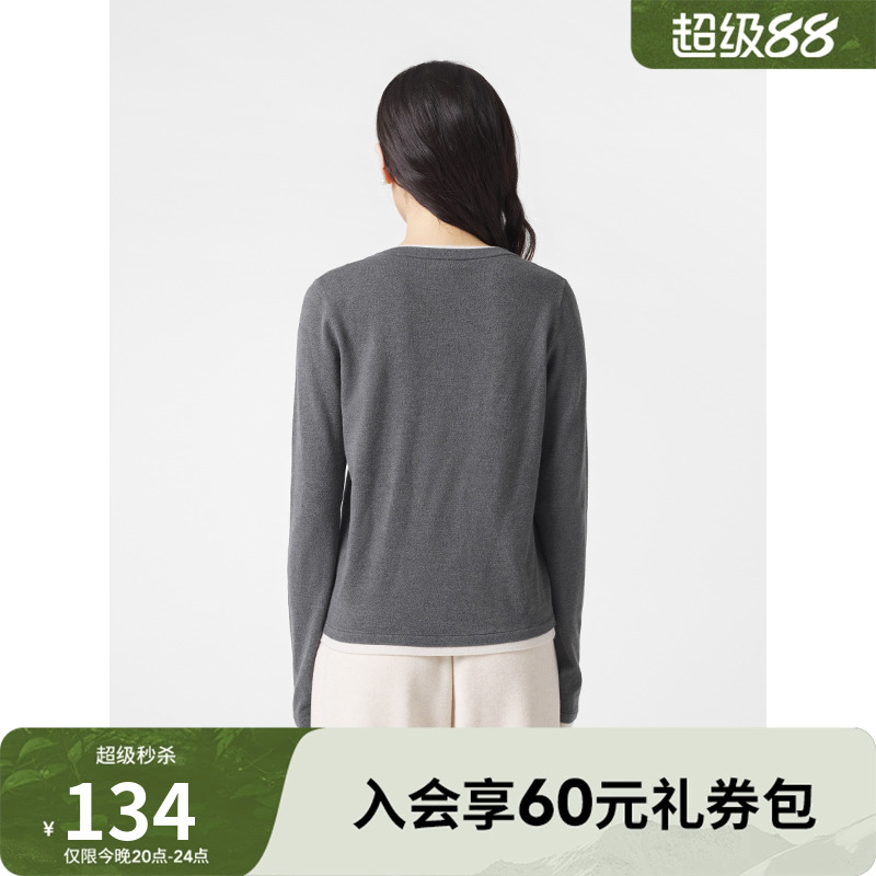 热风女士拼色假两件低圆领针织衫