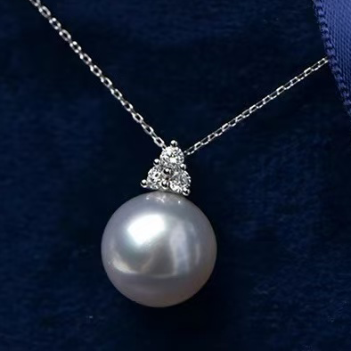 铂金PT900锆石10-13mm海水珍珠吊坠配件简约三粒锆圆形裸珠空托