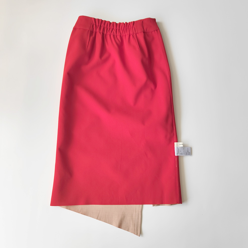 日单红驼拉链两面穿气质开衩下摆H版修身款半松紧腰半身裙女小码