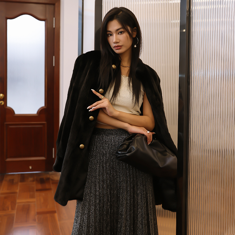 茉萱「豪门千金」紫标皇冠天鹅绒水貂皮草外套复全抽刀貂皮大衣女