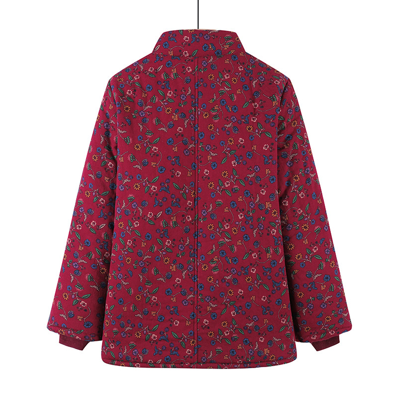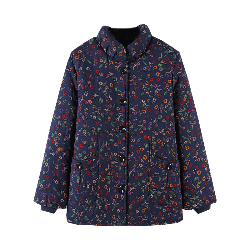 大码女装中长款印花纯棉加厚棉衣中老年妈妈冬装宽松加绒棉袄奶奶