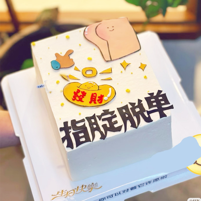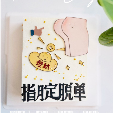搞怪指腚脱单身狗巧克力转印纸男生日蛋糕装饰桃花符烘焙用纸定制