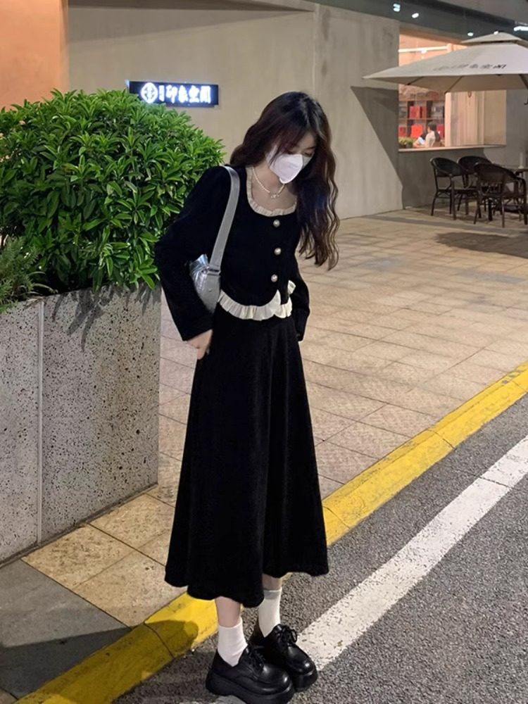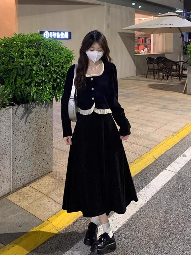 小香风套装女2025秋冬新款大码胖mm遮肚显瘦衬衫半身裙法式两件套