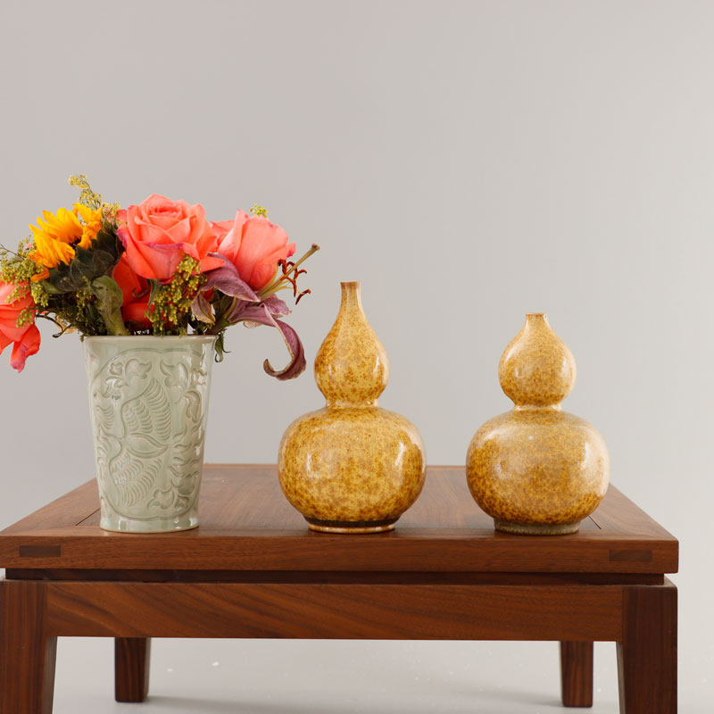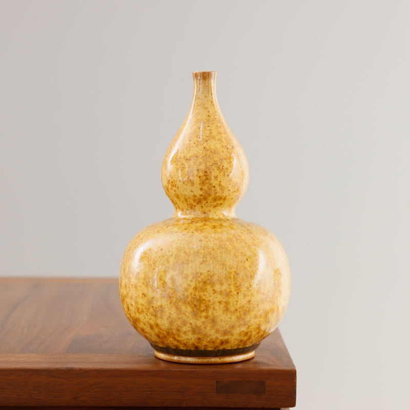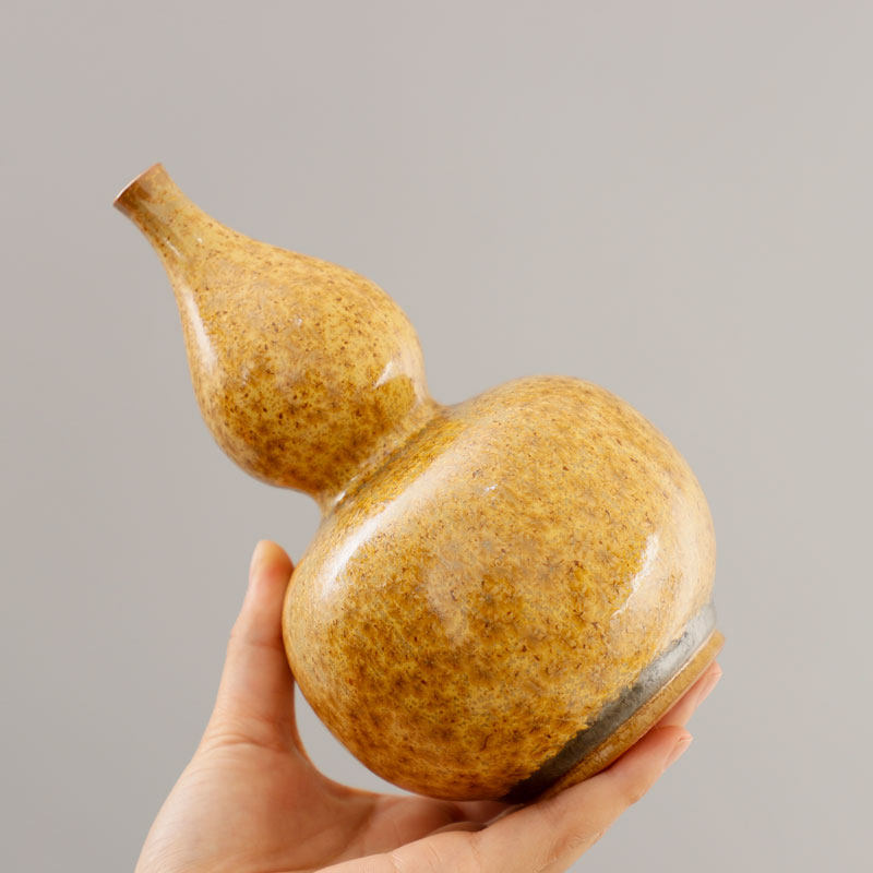 钧窑李峰茶叶末釉钛结晶手作花器青瓷粗陶高温窑变花瓶小葫芦摆件