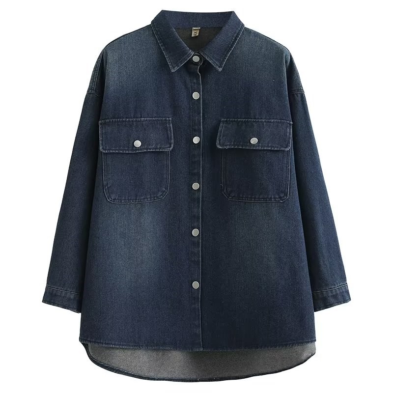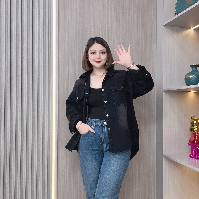 胖mm大码女装2023秋季新款宽松牛仔衬衫休闲时尚显瘦中长款外套女