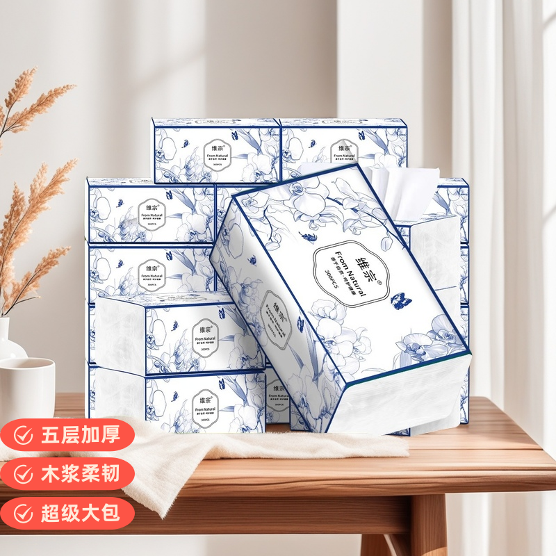 维宗厂家直销柔然纸巾五层加厚加大质感实惠家庭装10包提装抽纸