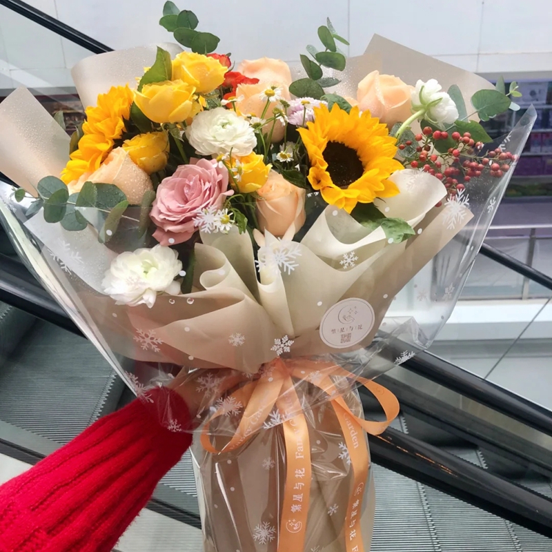 雪花图案透明加厚玻璃纸opp防水鲜花包装圣诞节花束包花纸礼品纸