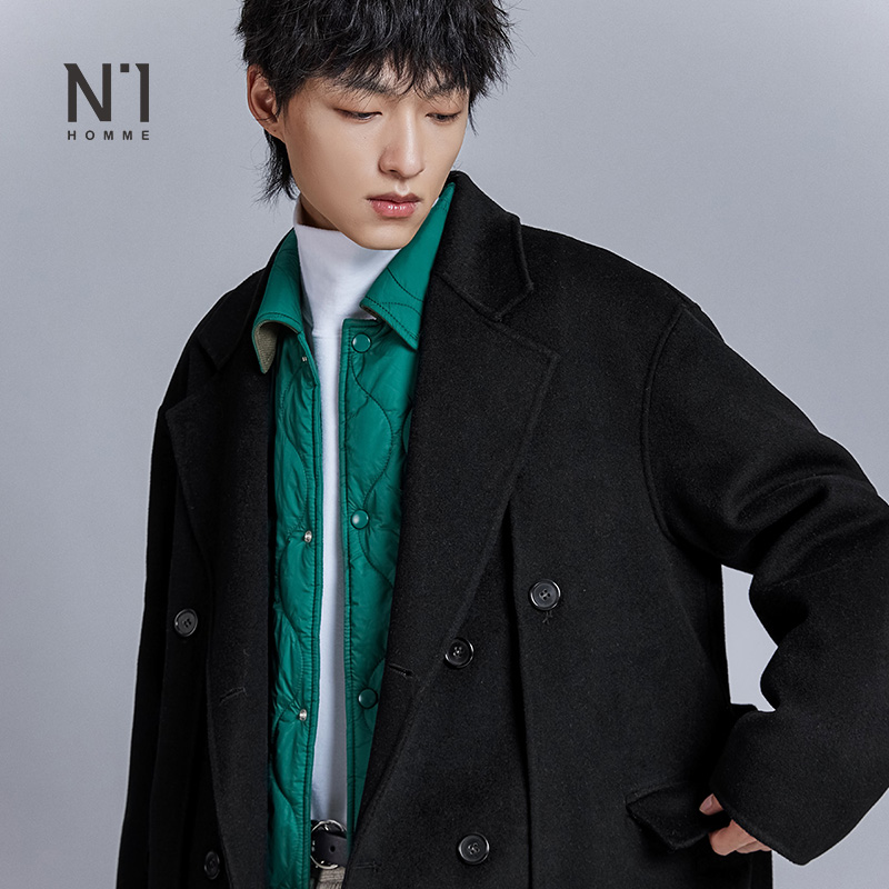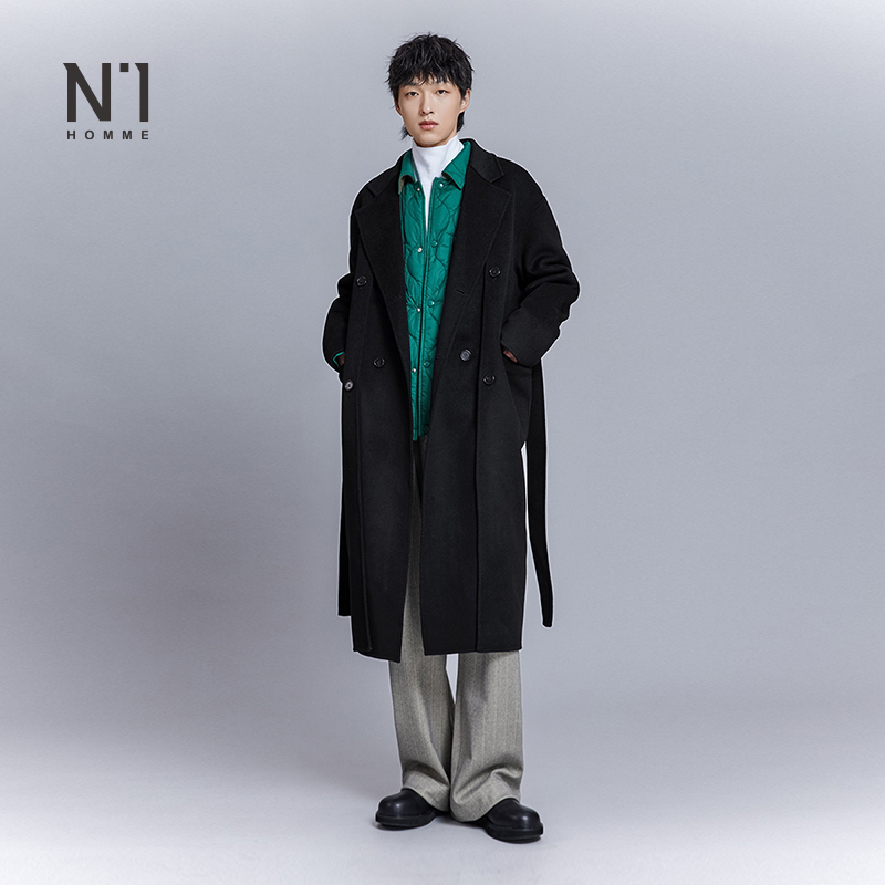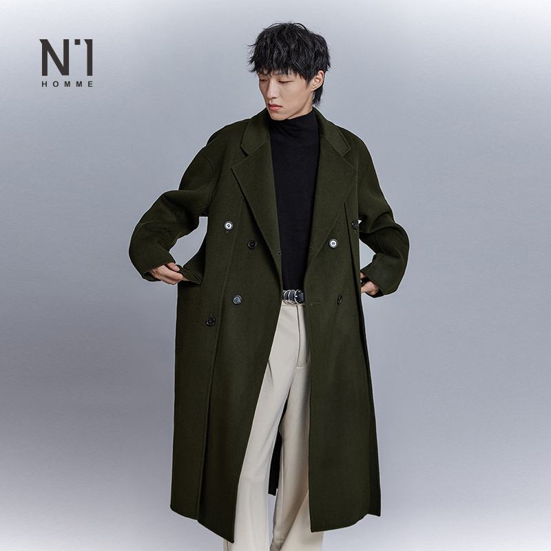 【清仓】N1重磅全羊毛双面毛呢大衣分割双排扣长款呢绒服男外套