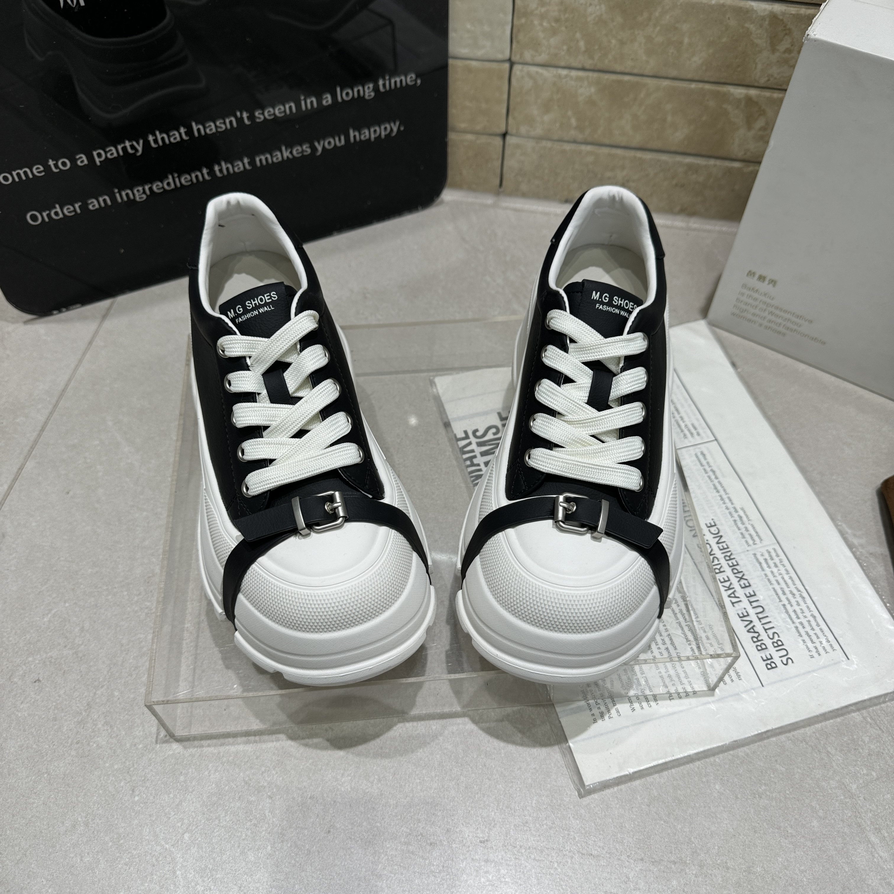 芭慕秀2026春季新款真皮厚底增高百搭休闲小白鞋板鞋运动鞋单鞋女
