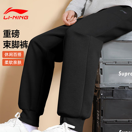 李宁运动裤男春秋季新款青少年跑步卫裤束脚针织休闲宽松大码裤子