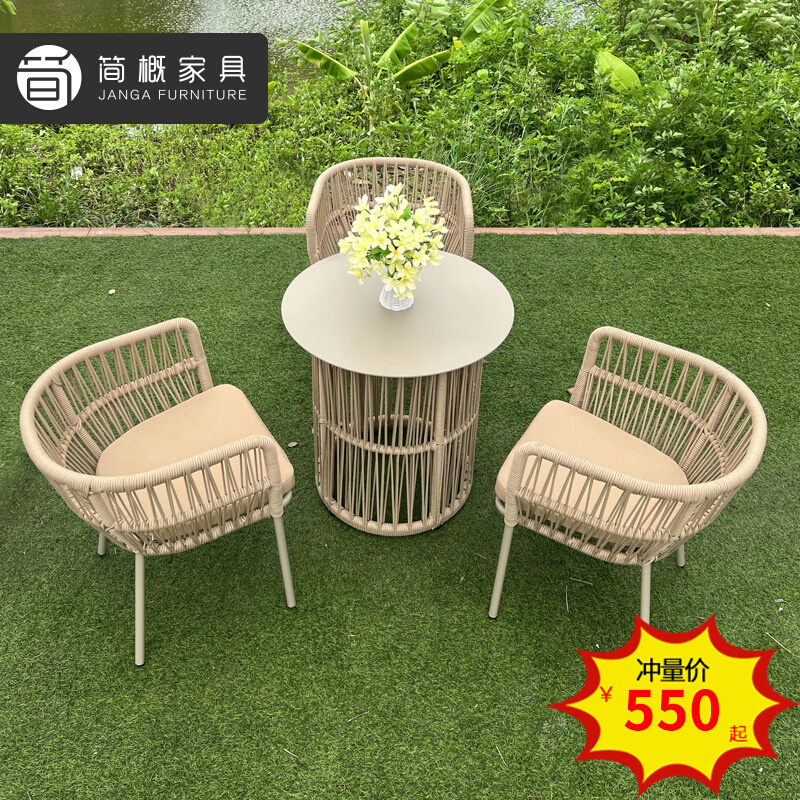 户外花园庭院桌椅休闲露台藤椅家具露天阳台绳编防水防晒桌椅家具