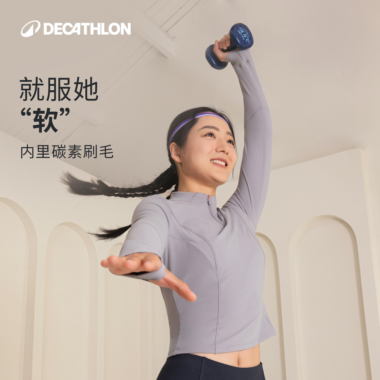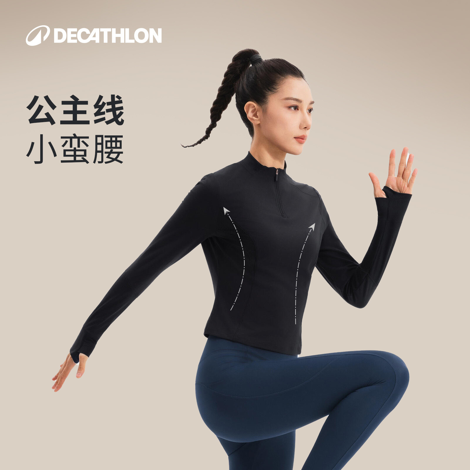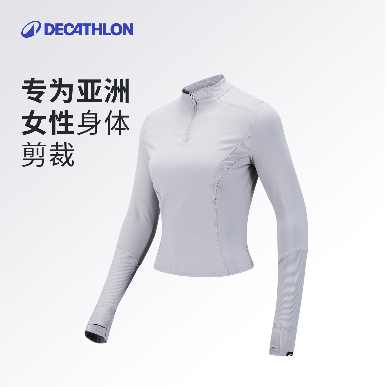 迪卡侬鱼骨半拉链长袖秋季新款女速干T恤训练服瑜伽服健身衣SAX2