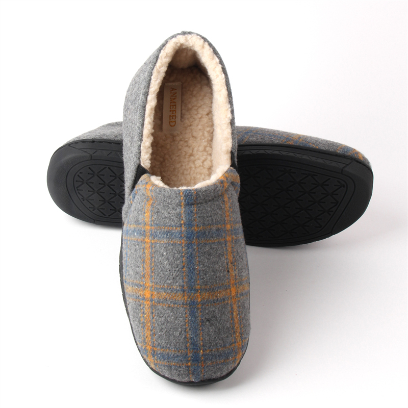 出口新品秋冬男士大码英伦格子加绒厚底防滑保暖居家用包跟棉拖鞋