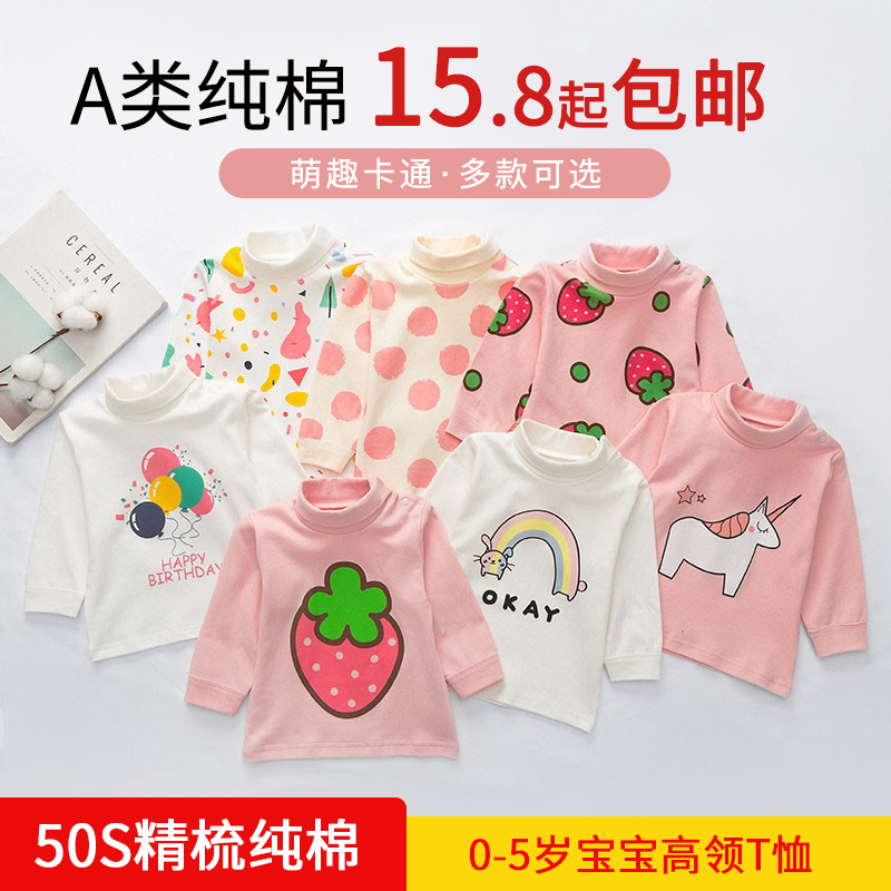 清仓 女宝宝纯棉半高领t恤儿童加绒打底衫女童保暖防风上衣秋冬装