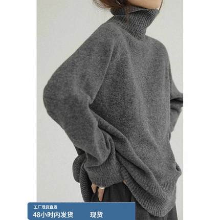灰色高领长袖毛衣女加厚秋冬欧货慵懒覆古软糯打底套头针织衫上衣