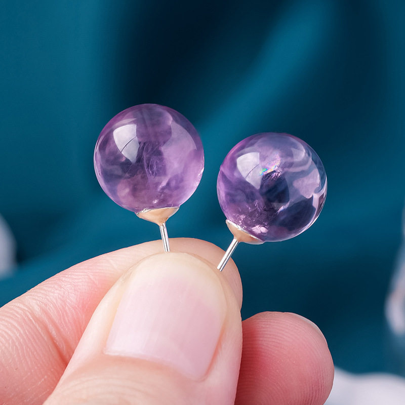 天然紫水晶耳钉高级感无耳洞