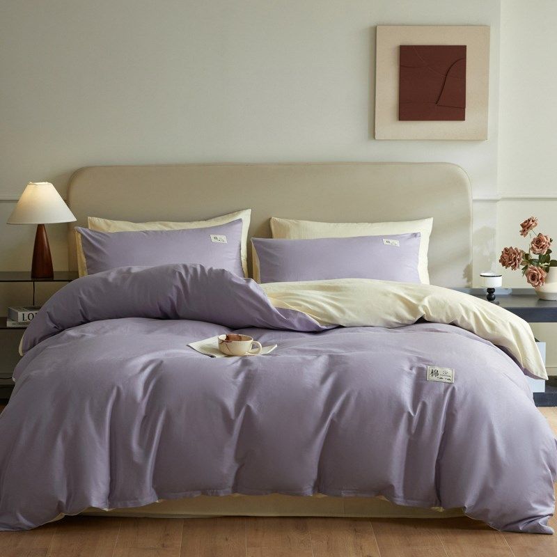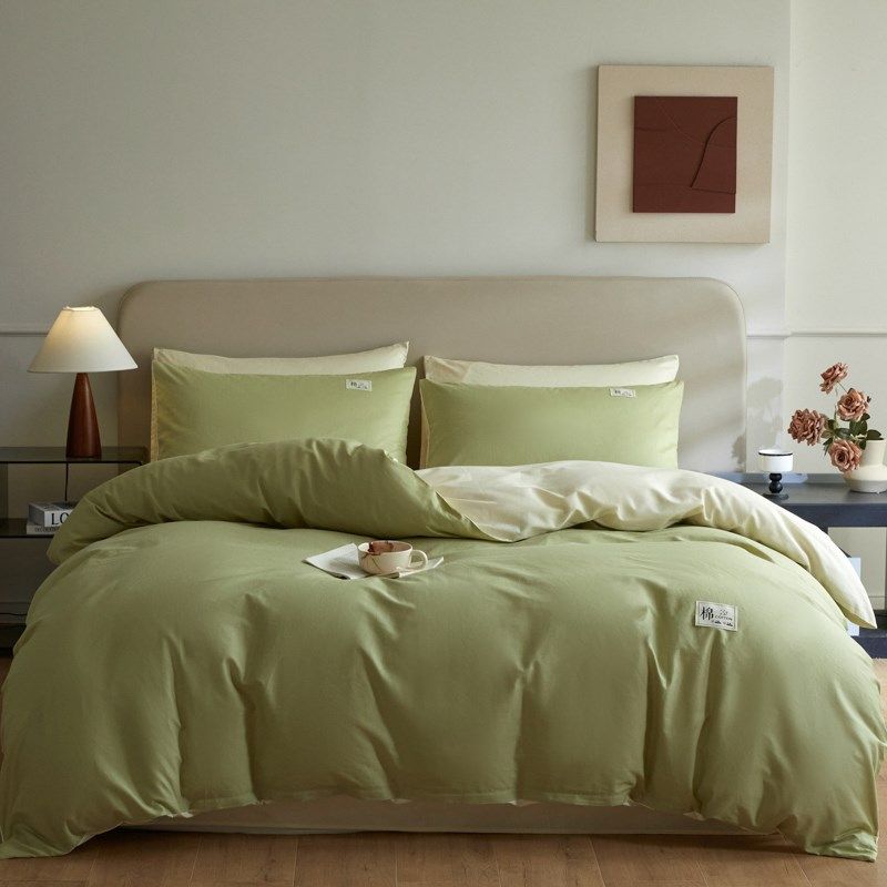 A类纯色双拼100%全棉四件套 纯棉被套床单款床笠款学生宿舍三件套