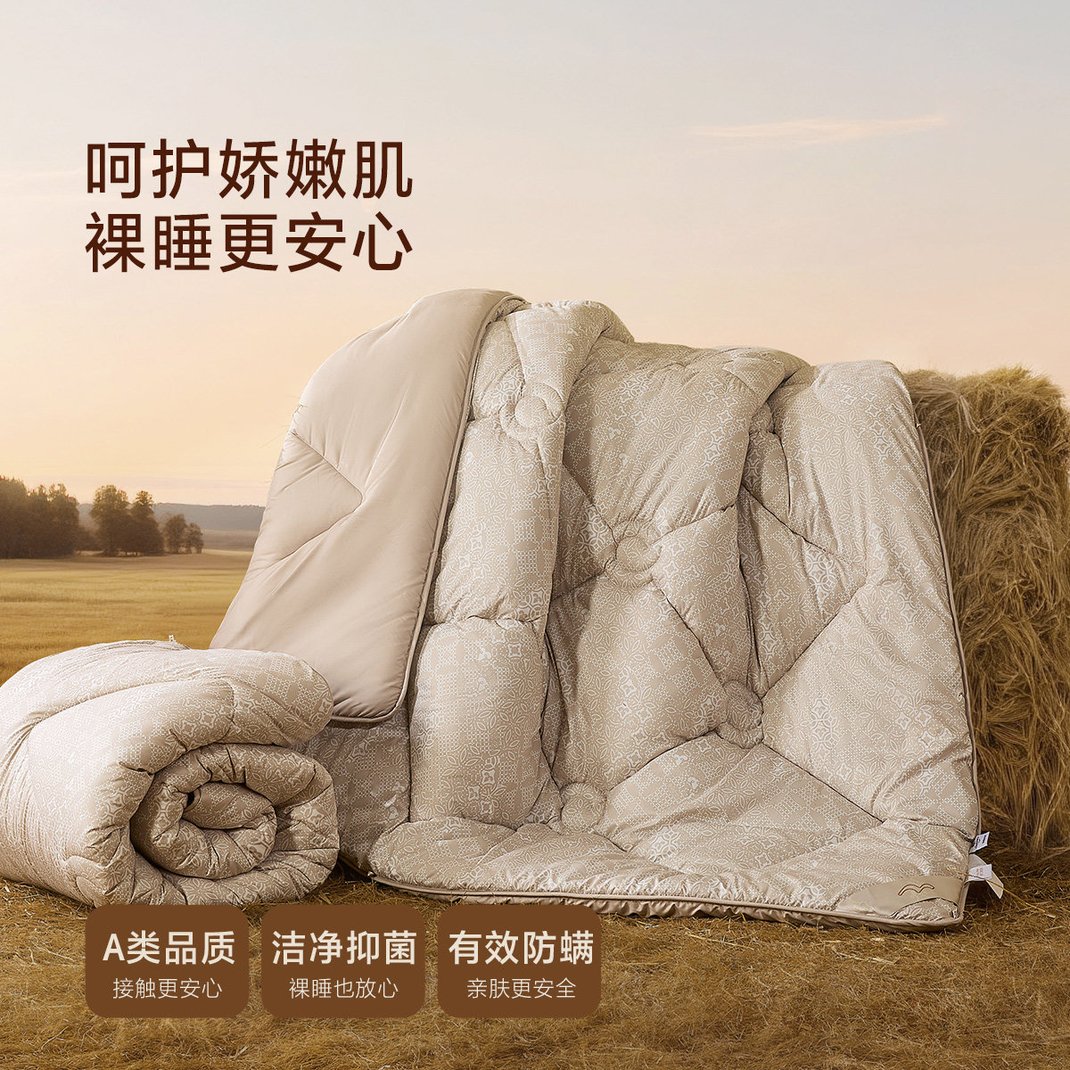 水星家纺进口澳洲羊毛二合一被保暖被芯家用四季被子高端床品