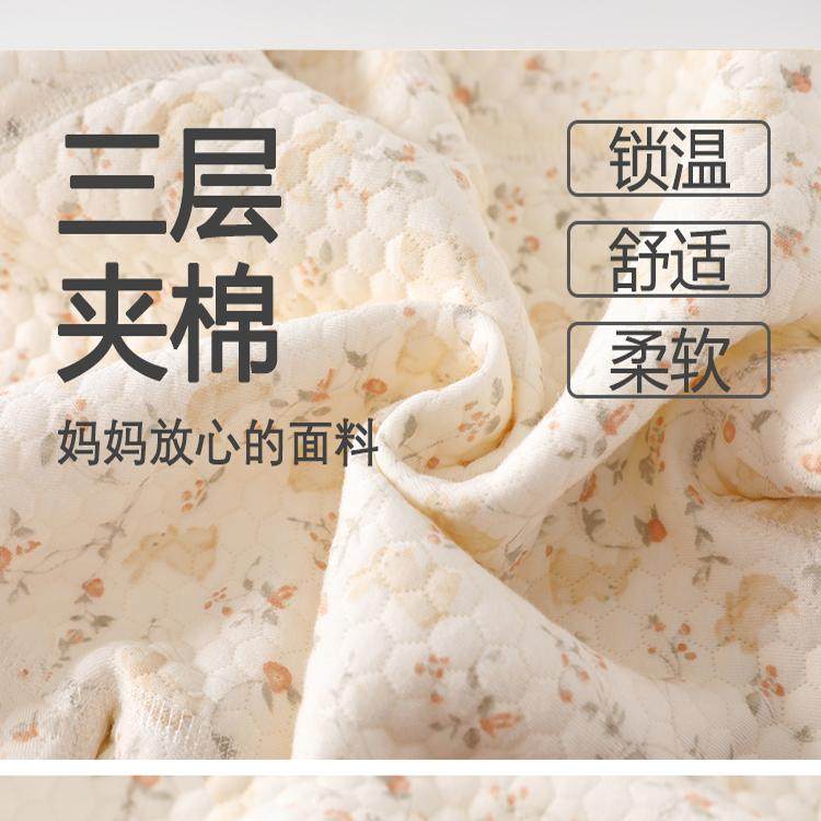 夹棉婴儿连体衣春秋款纯棉三层保暖冬季宝宝内搭打底新生幼儿衣服