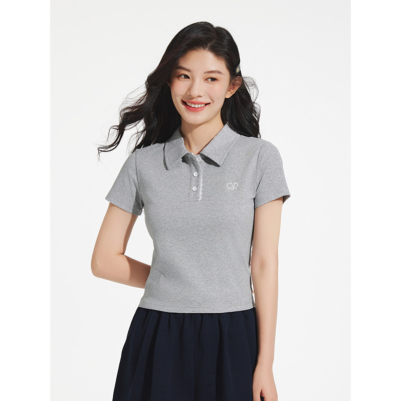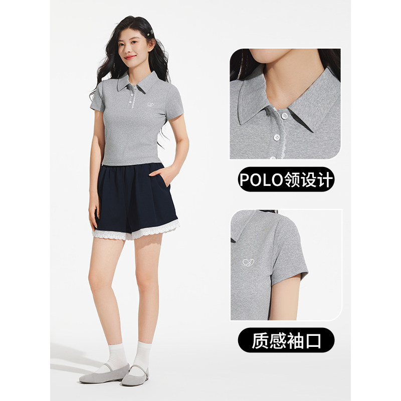 热风女士短袖T恤上衣polo衫2025年夏季新款女士翻领修身短袖上衣