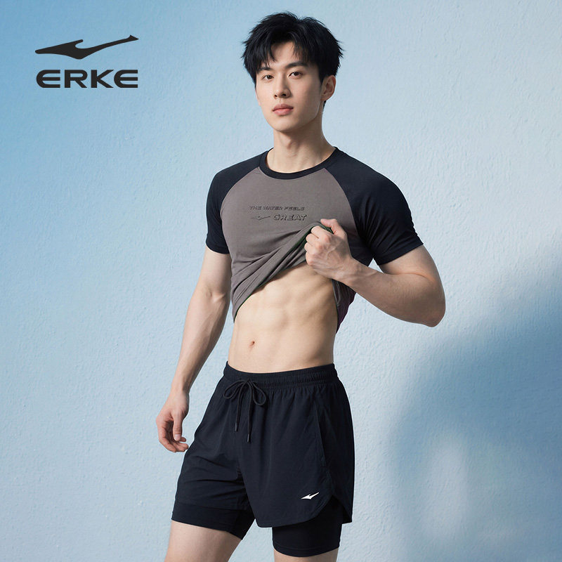 鸿星尔克泳衣男士分体上衣2025新款泡温泉保守运动游泳裤成人套装