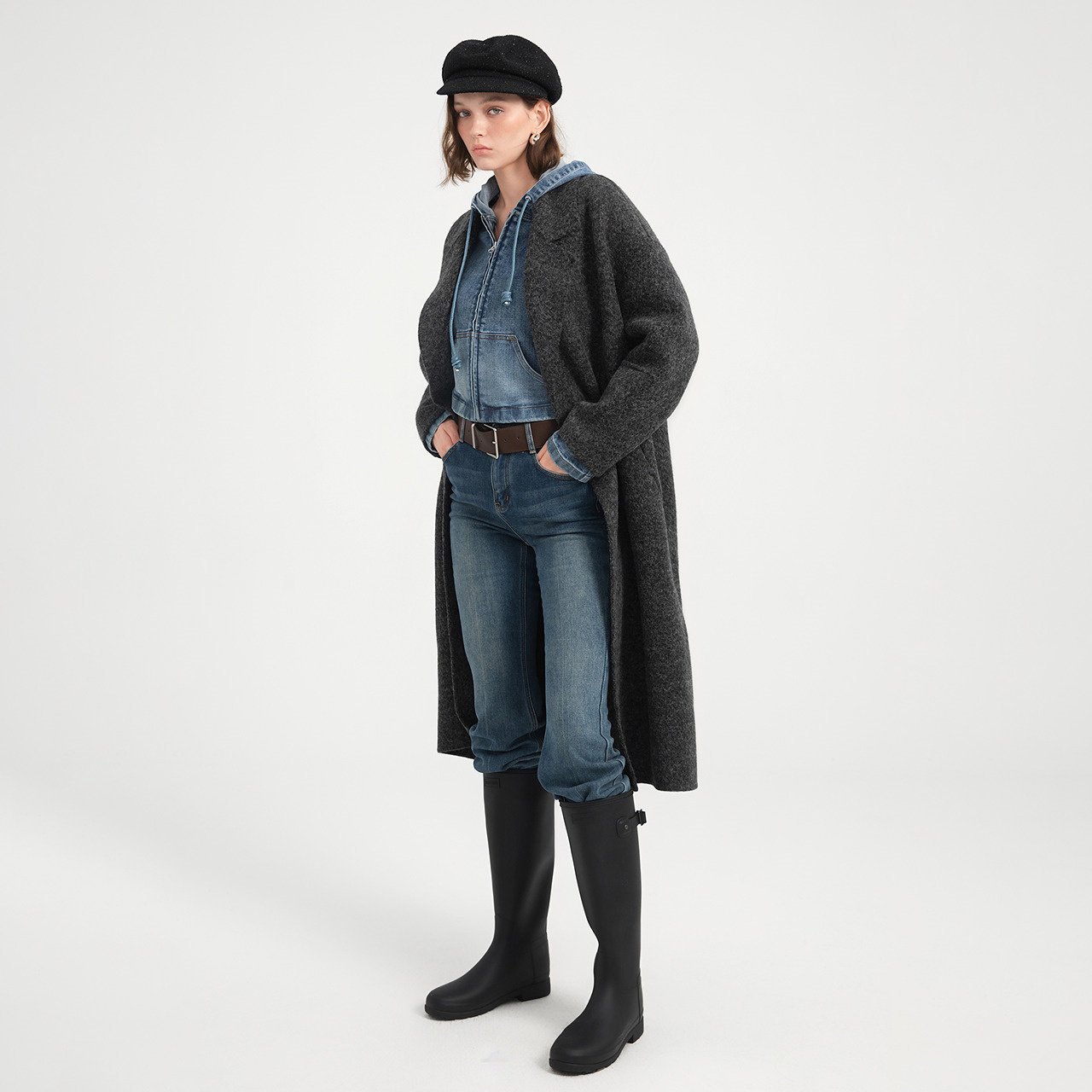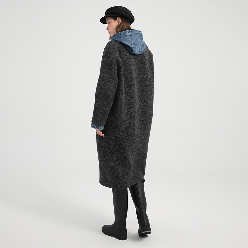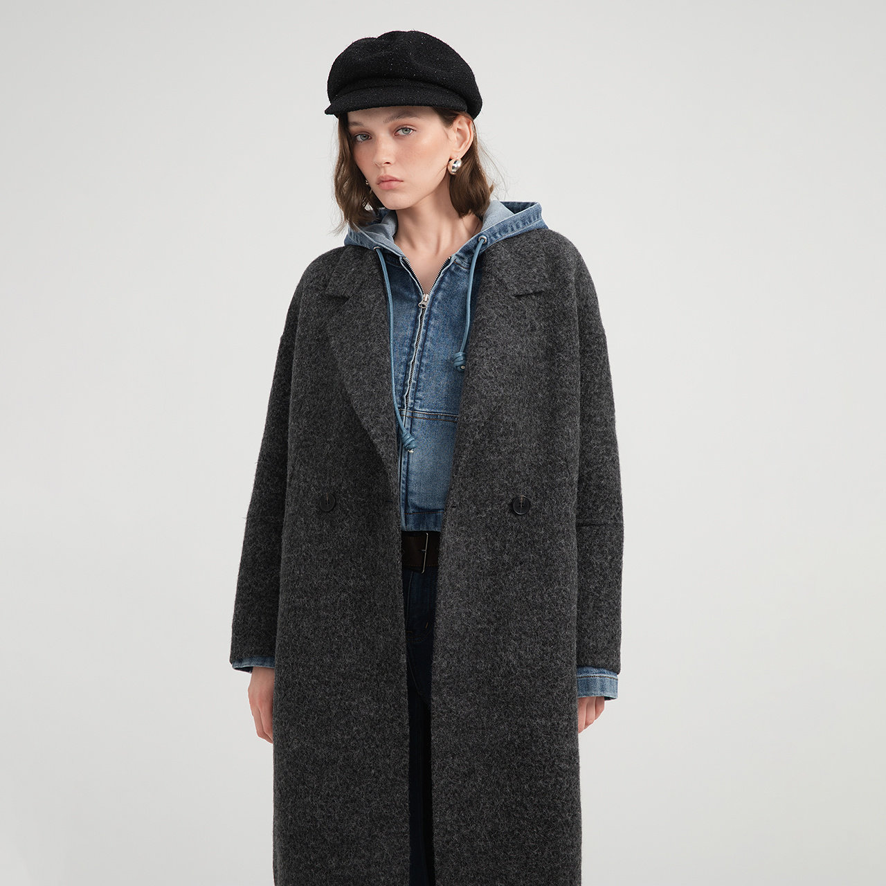 MOISSAC摩萨克2025冬新款高级感双排扣宽松经典版型毛呢大衣女
