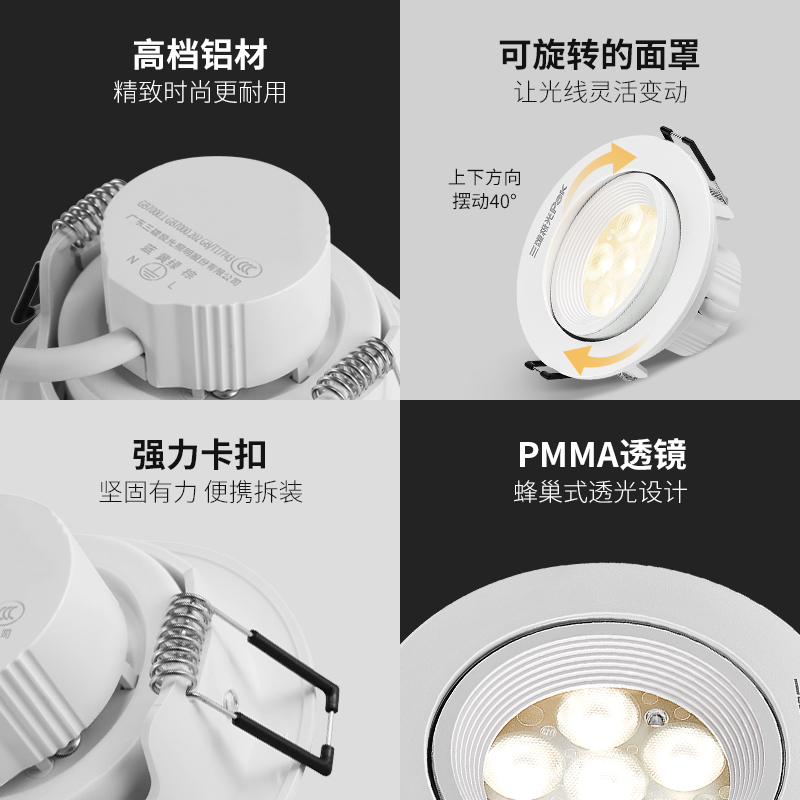 三雄极光射灯嵌入式星际一体化塑环led射灯可调筒灯背景墙天花灯