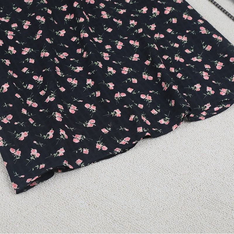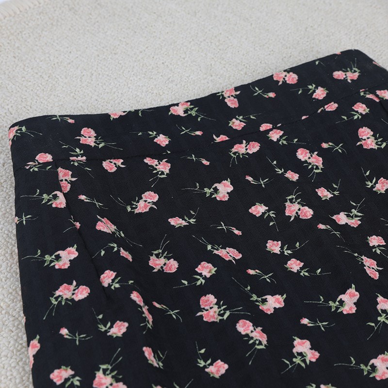 法式复古碎花半身裙女夏2025新款高腰显瘦黑底粉花a字气质中长裙