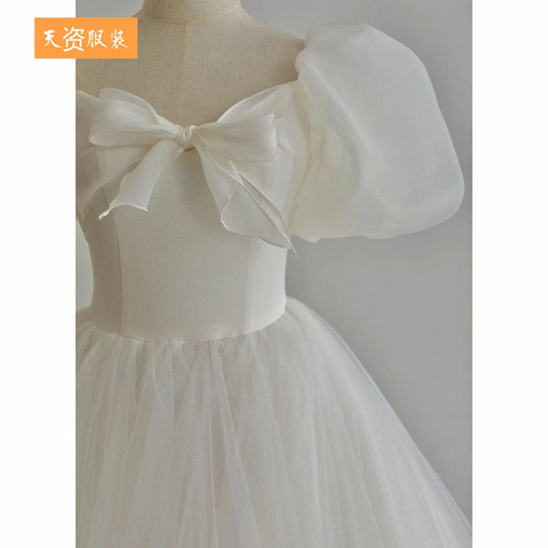白色轻婚纱晚礼服裙女2024新款领证登记平时可穿艺考主持人高级感