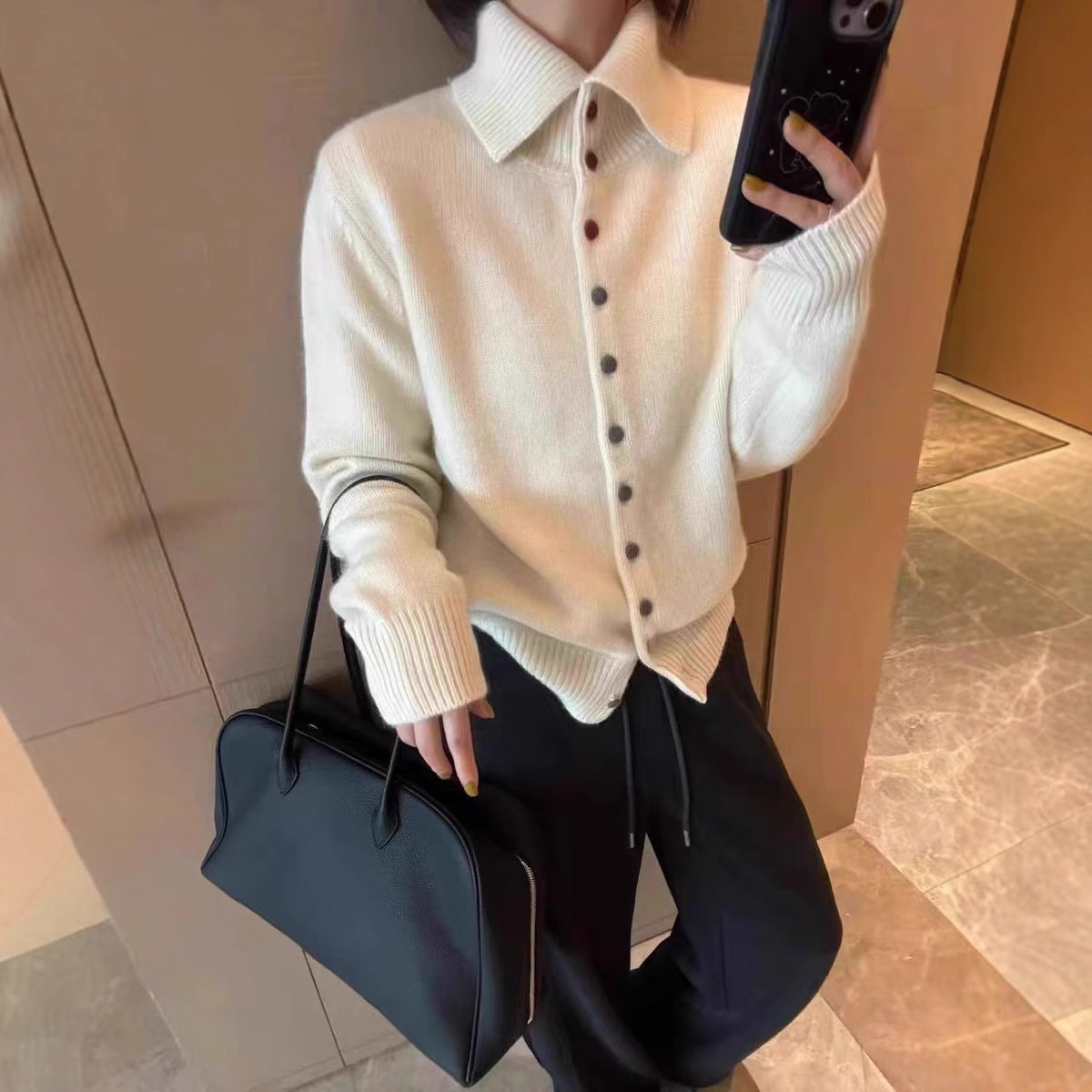 休闲风高领开衫毛衣女
