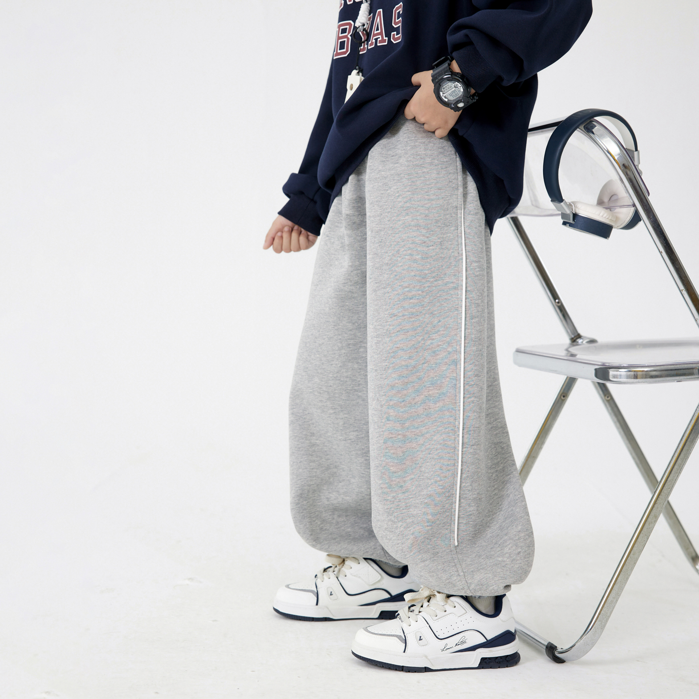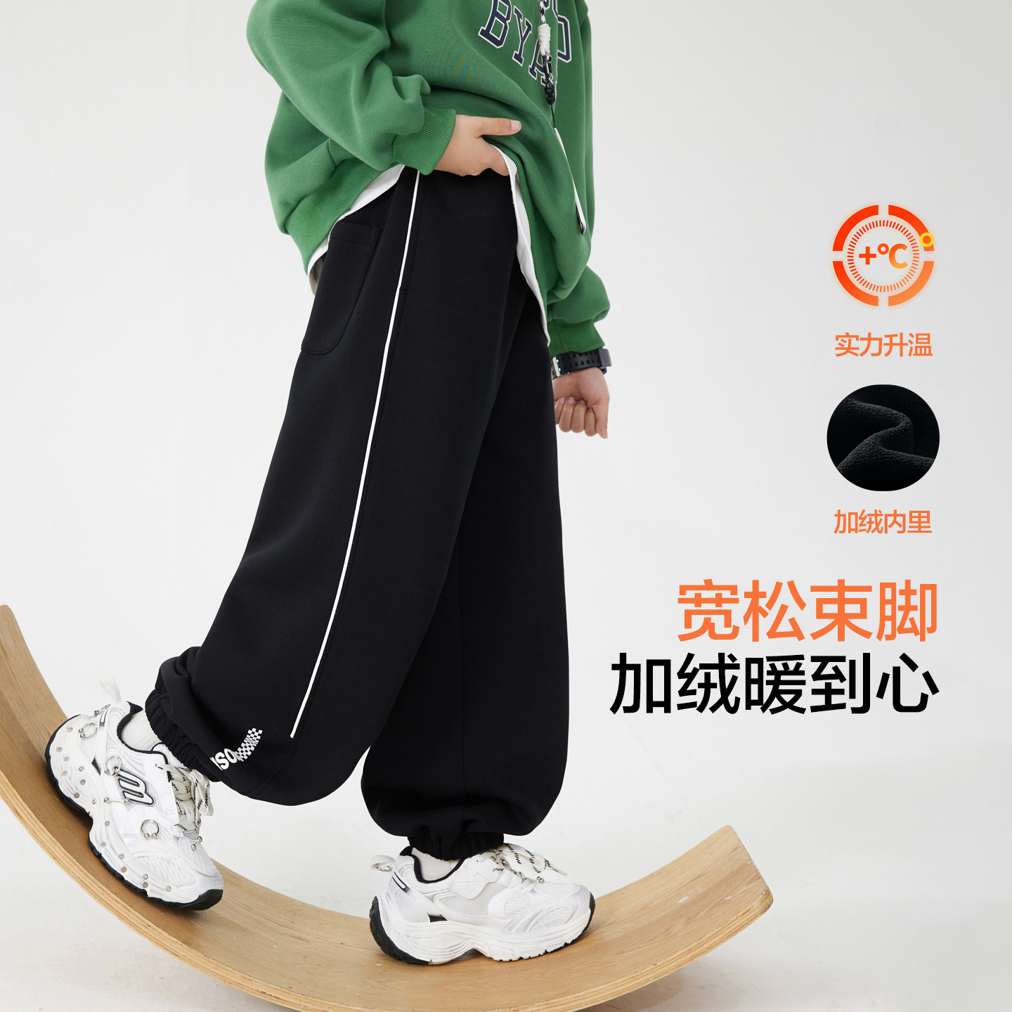 男童秋冬季韩范黑色一体绒运动卫裤2025新款儿童男孩加厚宽松裤子