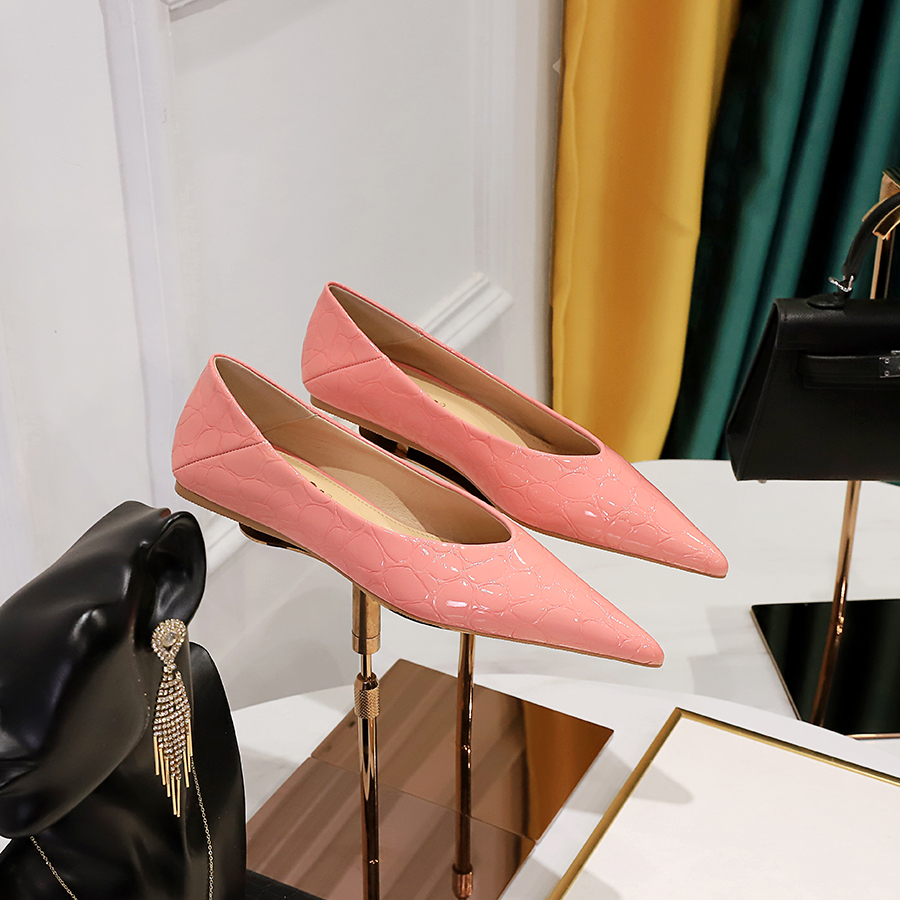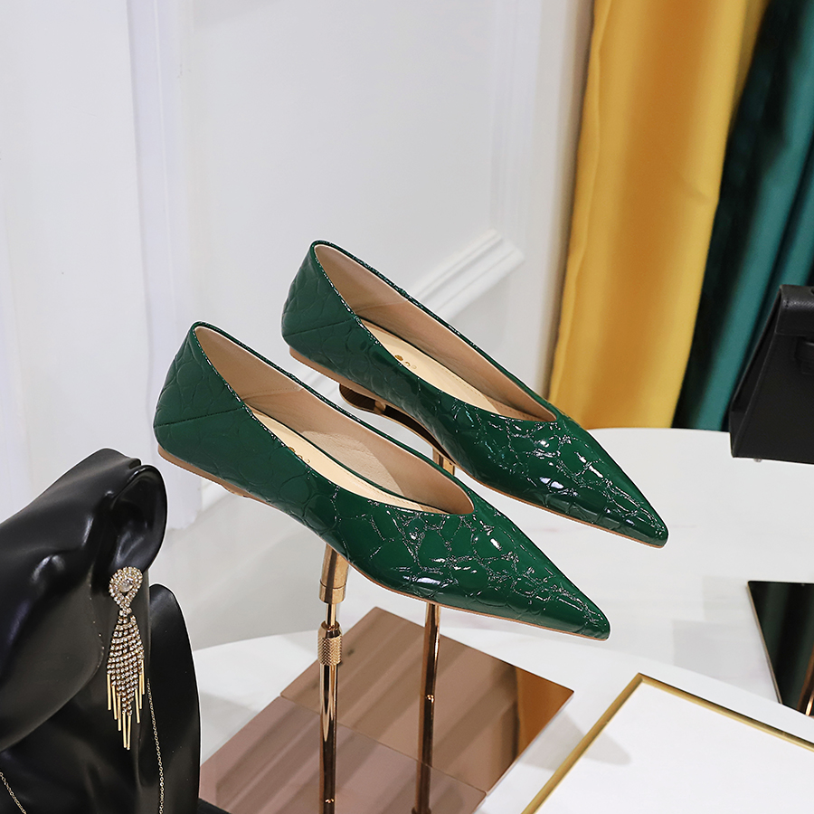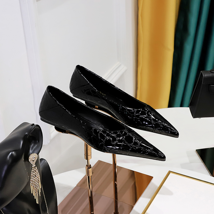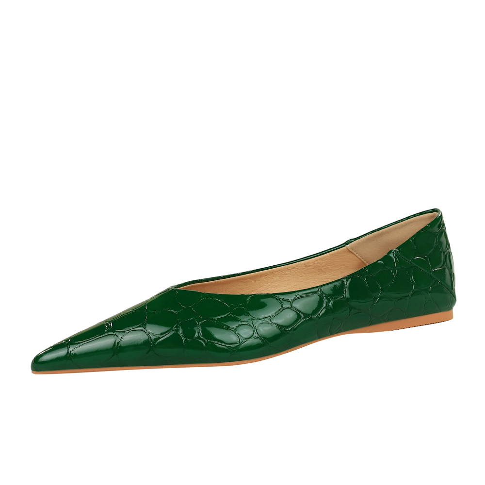 欧美风压纹漆皮平底鞋时尚瓢鞋女尖头V口一脚蹬舒适不累脚单鞋女