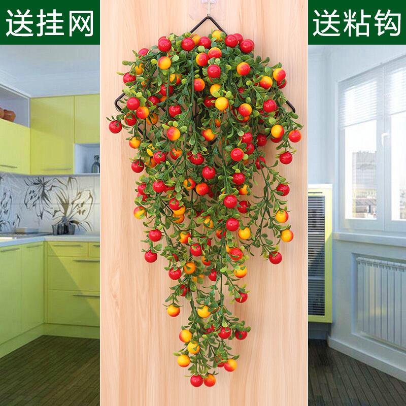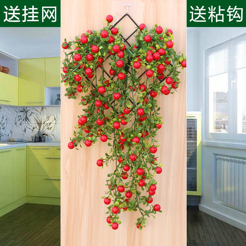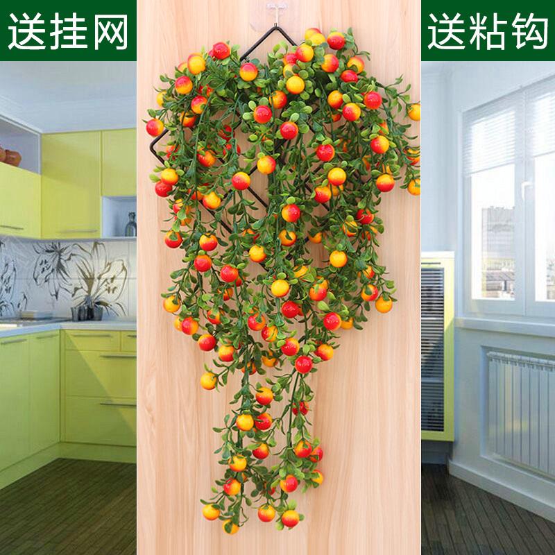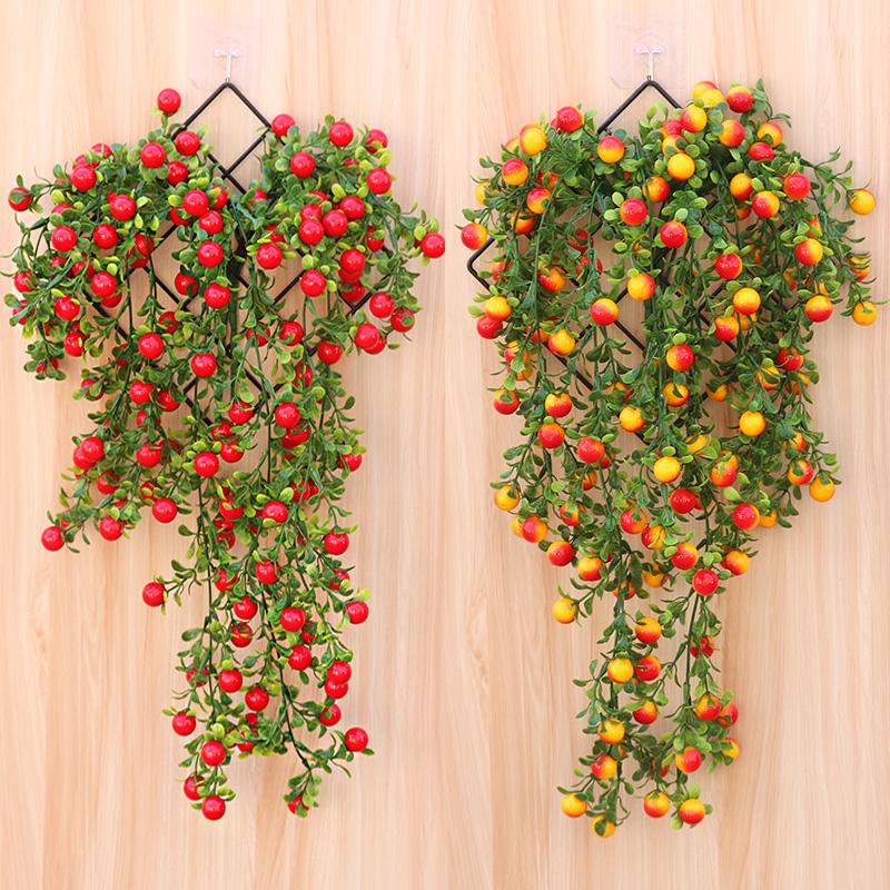新款网格仿真花藤条假花发财果壁挂客厅墙面装饰室内外绿植长藤蔓